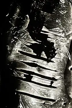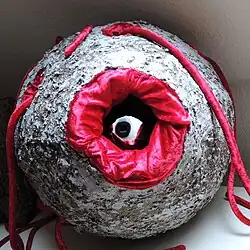 2010 entstand die erste Skulptur, ein liegender offener Kegel von vier Meter Länge und zwei Meter Durchmesser im „Eingangsbereich“. Die Höhe des Objektes könnte ein Hineingehen in die Skulptur ermöglichen. Der rote Samt im Inneren der Skulptur ist in Hunderte rosettenförmiger Falten gelegt und mit Spiegelscherben und kleinen Kristallen besetzt. Ein großer zerbrochener Spiegel im Inneren reflektiert den Kopf des jeweiligen Betrachters. Anschließend entstanden kleinere Skulpturen in der gleichen Technik. Auch bei den folgenden Leinwandarbeiten blieben Licht und Körper Schwerpunktthemen ihrer Arbeit. Der Samt wurde mit Kristallen und Spiegelscherben kombiniert, Skulpturen als auch Bilder wurden von angedeuteten Rippen und Adern durchzogen.[2] Die vorher noch mit den Skulpturen fest verbundenen Adern lösten sich in den folgenden Arbeiten vom Untergrund und wurden zu eigenständigen Elementen.
