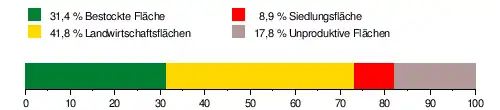 Es besteht zu 31,4 % aus bestockter Fläche, zu 41,8 % aus Landwirtschaftsfläche, zu 8,9 % aus Siedlungsfläche und zu 17,8 % aus unproduktiven Flächen.