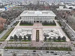 • Ala-Too-Platz: Der Platz im Stadtzentrum wird begrenzt vom Historischen Nationalmuseum im Norden und einem Regierungsgebäude im Süden, flankiert von marmorverkleideten Arkaden, dem Gebäude des Kulturministeriums und dem Panfilow-Park. In der Mitte des Platzes stand ein Lenin-Denkmal, das nach der Unabhängigkeit durch eine kirgisische Freiheitsstatue ersetzt wurde, die jedoch inzwischen wiederum einem Manas-Denkmal weichen musste. Neben dem Denkmal steht eine große kirgisische Flagge, die von zwei Soldaten der Nationalgarde bewacht wird.[35]