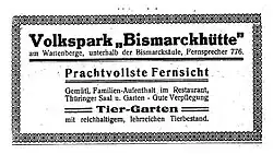 - Max Kehl: Bergschänke Bismarckhütte mit Tiergarten am Wartenberge unterhalb der Bismarcksäule bei Eisenach. 1. Auflage. Artur Laue, Eisenach 1913.