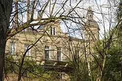 Zu dem Anwesen gehört ein gleichzeitig entstandener Gusseisenzaun als Einfriedung.