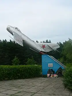 Am südöstlichen Stadtrand, an der Straße Brest-Baranowitschi wurde 1974 zu Ehren der sowjetischen Militärflieger auf einem Podest ein Düsenjäger als Denkmal aufgestellt. Das Denkmal soll insbesondere daran erinnern, dass es sowjetischen Fliegern in den ersten Kriegstagen im Juni 1941 gelungen war, einige deutsche Flugzeuge abzuschießen. Über die Zerstörung vieler sowjetischer Flugzeuge noch auf den Flughäfen am ersten Kriegstag schweigt man sich aber aus.[9]