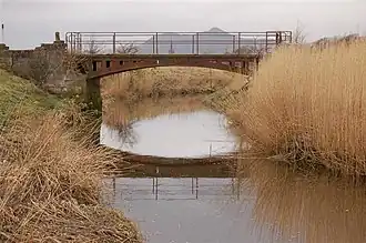 Der Black Devon nahe der Mündung. Im Hintergrund die Anlagen der Alloa Glass Works mit dem Glashüttenturm