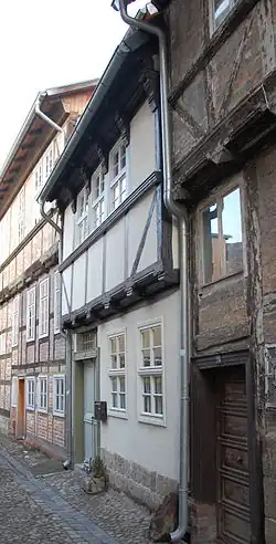 Das kleine zweigeschossige Fachwerkhaus entstand in der zweiten Hälfte des 17. Jahrhunderts. Die Fachwerkfassade weist die für die Spätrenaissance typischen Verzierungen auf. So finden sich an der Stockschwelle zylindrische Balkenköpfe und schmale Schiffskehlen.