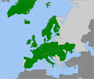 Europäische Länder mit Fundnachweisen des Lilablättrign Schleimfußs.[5][6][7][8][9][10][11][12][13][14][15]