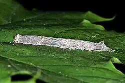 Die Raupe ist grau gefärbt und mit feinen, schwarzen Punkten besetzt. Sie werden 65 bis 75 mm lang.[1] Die Rückenlinie ist nur schwach ausgebildet. Eine flache, querverlaufende Erhebung auf dem 8. Segment ist hinten schwarz gerandet. Der Kopf ist relativ groß, hellbraun gefärbt mit einer dunkelbraunen Netzung.[3]