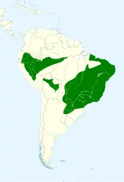 Der Blauflügel-Sperlingspapagei in Peru, Bolivien, Brasilien, Paraguay und Argentinien vor.