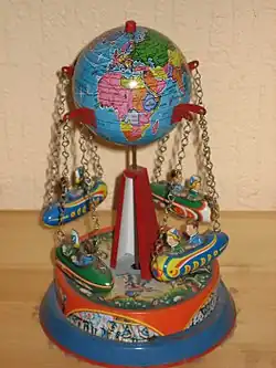 Das erste Blechspielzeug in Deutschland wurde im 19. Jahrhundert vermutlich vom schwäbischen Hersteller Rock & Graner[1] produziert, zunächst in Manufakturen, ab etwa 1890 in industrieller Massenfertigung. Die Fertigung von Blechspielzeug erlebte zwischen 1890 und 1910 eine Blütezeit., verantwortlich dafür waren sowohl verbesserte Stanz- und Druckmaschinen als auch günstigere Methoden der Farbanwendung.[2] Die deutschen Produkte waren einige Zeit weltweit ein Verkaufsschlager, Nürnberg und das Patentwerk Ernst Paul Lehmann in Brandenburg an der Havel die führenden Produktionsstandorte. Das änderte sich in den 1950er Jahren, als Japan die deutsche Konkurrenz hinter sich ließ.