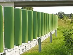 Blendschutzzäune bestehen in der Regel aus Kunststoff-Lamellen, die je nach Erfordernis eine Höhe zwischen 0,60 m und 1,20 m aufweisen. Die Montage erfolgt in kurzen Abständen üblicherweise auf Schutzplanken oder Betonschutzwänden.