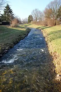 Zwischen dem alten Ortsteil, der seinen dörflichen Charakter noch bewahrt hat, und dem Neubaugebiet am Villehang fließt die Erft. An ihren Ufern entstand wohl im Rahmen der Regulierung des Flussbettes ein im Hinblick auf ansteigende Wasserstände recht breit angelegter Grünstreifen.
