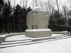 Nach der Kapitulation der Wehrmacht und dem Kriegsende erfolgte eine Entmilitarisierung des Denkmals: Die Stahlhelmkuppel wurde verfremdet, Eisernes Kreuz, Eichenlaub und Inschrift wurden entfernt. Die Zweckbestimmung des verbliebenen Steinklotzes war nicht mehr erkennbar. Das Kriegerdenkmal am Rande eines sowjetischen Truppenübungsplatzes verfiel im Laufe der Jahrzehnte, wurde von Unterholz überwuchert und geriet völlig in Vergessenheit.