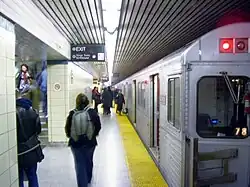 Im April 2019 installierte die TTC im Rahmen eines sechsmonatigen Versuchsprojekts Bodenaufkleber entlang der Bahnsteigkanten, um während der Hauptverkehrszeit die Menschenmassen beim Einsteigen in die Züge zu lenken. Graue Aufkleber zeigen an, wo die Fahrgäste auf dem Bahnsteig stehen sollten, um die aussteigenden Fahrgäste nicht zu behindern. Blaue Aufkleber mit einem Rollstuhlsymbol zeigen an, wo Fahrgäste mit Mobilitätsproblemen einsteigen sollen.[4]