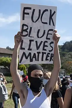 Im Juli 2020 kam es bei den Protesten infolge des Todesfalles von George Floyd zu Zusammenstößen zwischen Anhängern von Blue Lives Matter und Black Lives Matter, wobei sich einige Vertreter von Blue Lives Matter nicht als Gegner der Black-Lives-Matter-Bewegung sehen. Als Entgegnung zur Forderung, der Polizei die finanziellen Mittel zu entziehen, wurde zudem die Bewegung Back the Blue (deutsch Unterstützt die Blauen) gestartet.[8] Beim Sturm auf das Kapitol in Washington 2021 nahmen Unterstützer von Blue Lives Matter, darunter Polizisten außer Dienst teil. Die Unterstützung von Blue Lives hatte in der Präsidentschaftskandidatur Donald Trumps eine wichtige Rolle gespielt.[5] Rechtsextreme Gruppen wie die Proud Boys verwenden den Slogan Blue Lives Matter ebenfalls.[9]