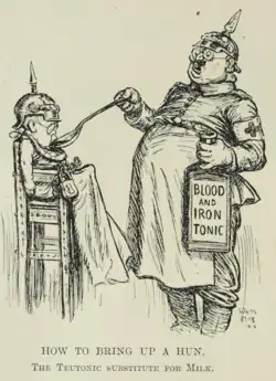 - ↑ Wolfgang K. Hünig: British and German Cartoons as Weapons in World War I. Invectives and Ideology of Political Cartoons, a Cognitive Linguistics Approach. Lang, Frankfurt am Main 2002, ISBN 978-3-6315-0211-2, S. 125.