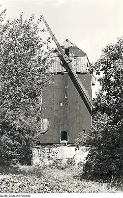 Im Jahr 1808 wurde am jetzigen Mühlenstandort die Breitmeyersche Bockwindmühle errichtet. Zum Teil wird auch die Bezeichnung Breitfeldsche Mühle genutzt. Nach einer Nutzungseinstellung im 20. Jahrhundert verfiel diese Mühle, wurde jedoch Mitte der 1990er Jahre saniert. Während des Orkans Jeanett gerieten die Windmühlenflügel am 28. Oktober 2002 trotz eingesetzter Bremse in Drehung. Durch die dadurch entstandene Hitze entzündete sich ein Feuer, dem die Mühle fast vollständig zum Opfer fiel. Lediglich der Schrick blieb erhalten.
