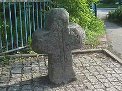 Das mittelalterliche Steinkreuz an der Bodenbacher/Ecke Marienberger Straße wurde möglicherweise als Sühne für eine geschehene Bluttat errichtet. Auf der Vorderseite ist ein Hirschfänger eingeritzt worden, der vermutlich als Mordwaffe diente.[1]