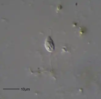 - ↑ G.C. Mitchell, J.H. Baker, M.A. Sleigh: Feeding of a Freshwater Flagellate, Bodo saltans, on Diverse Bacteria. In: Journal of Eukaryotic Microbiology. 35. Jahrgang, Nr. 2, 1988, S. 219–222, doi:10.1111/j.1550-7408.1988.tb04327.x (englisch).