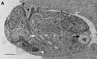 - ↑ a b Jane Harmer, Vyacheslav Yurchenko, Anna Nenarokova, Julius Lukeš, Michael L. Ginger: Farming, slaving and enslavement: histories of endosymbioses during kinetoplastid evolution. In: Cambridge University Press: Parasitology, Band 145, Nr. 10, S. 1311–1323, September 2018; doi:10.1017/S0031182018000781, PMID 29895336, Epub 13. Juni 2018 (englisch). Siehe u. a. Fig. 2.