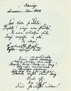 Erstversion der Zdravljica von France Prešeren im Bohorič-Alphabet