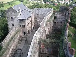 Nach dem Tod des Herzogs Bolko II. fiel das Herzogtum Schweidnitz-Jauer 1368 erbrechtlich an Böhmen, wobei der Herzoginwitwe Agnes von Habsburg ein lebenslanger Nießbrauch zustand. Sie setzte auf der Hainburg Burggrafen ein, u. a. bis 1371 Hans von Logau, dem Gottsche Schoff folgte und danach Günzel von Schweinhaus. Erst nach dem Tod der Herzoginwitwe 1392 konnte der böhmische König Wenzel, der ein Sohn von Bolkos II. Nichte Anna von Schweidnitz war, das Erbe des nun böhmischen Erbfürstentums Schweidnitz-Jauer antreten. An die Spitze seines Erbfürstentums setzte er böhmische Landeshauptleute ein, die die Funktion eines königlichen Statthalters ausübten und das Bolkenhainer Burglehen pfandweise erwerben konnten. So gelangte das Burglehen, das aus der Stadt und Burg sowie den Dörfern Einsiedel, Giesmannsdorf, Hohenhelmsdorf, Ruhbank, Klein-Waltersdorf und Wiesau bestand[2], 1412 an den Landeshauptmann Jan von Chotěmice, der dem König Geld geliehen hatte. Vor 1439 war das Burglehen in der Hand des Heinrich von Tschirn, der wohl ein Raubritter war und es bis 1459 halten konnte. 1463 eroberte der böhmische König Georg von Podiebrad Bolkenhain, der Hans von Tschirn auf der Burg einsetzte. 1468 wurde die Burg von Schweidnitzer und Breslauer Truppen eingenommen.