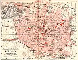 Zu Beginn des 20. Jahrhunderts wurden die Mauern der Stadt bis auf wenige Reste abgerissen, um der schnell wachsenden Bevölkerung Platz zu schaffen. In den Wahlen am 28. Juni 1914 errang der Sozialist Francesco Zanardi[7] zum ersten Mal das Stadtpräsidium (sindaco) für die Linke. Mit der Unterbrechung des Faschismus wird Bologna seitdem überwiegend von linken Stadtregierungen verwaltet.