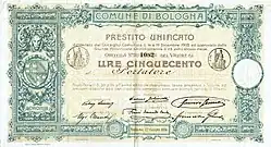 Nach dem Krieg erholte sich Bologna schnell. Bald erhielt der Aufschwung die Bezeichnung „Italienisches Wirtschaftswunder“ (Miracolo economico italiano). Am Stadtrand hielt die architektonische Moderne Einzug, etwa mit der Nuova Manifattura dei Tabacchi (1951–1952) des Architekten Pier Luigi Nervi.[11] Bologna ist heute eine der wohlhabendsten und stadtplanerisch gelungensten Städte Italiens.