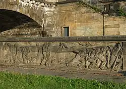 Bomätscher auf einem Relief unterhalb der Albertbrücke in Dresden, geschaffen von Edmund Moeller, 1938