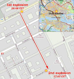 - ↑ Lage 1.Explosion59° 20′ 8,5″ N, 18° 3′ 35,5″ O
