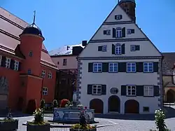• Altes Rathaus, 1585–1586 von Wolfgang Waldberger erbautes Fachwerkgebäude mit markantem Pranger