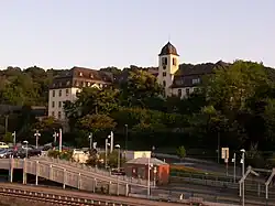 - ↑ Bild der ehemaligen Bahnmeisterei mit Gleisanlagen, die zum Bahnhof führten. Die Gleisanlagen wurden zwischenzeitlich zurückgebaut. Abgerufen am 7. April 2010.