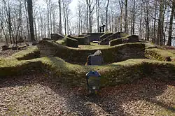 - ↑ Informationstafel zur frühmittelalterlichen Wallburg im nördlichen Bereich der Wallanlage