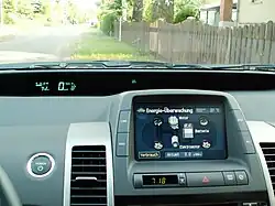 Cockpit des Toyota Prius mit Statusanzeige des Hybridantriebs