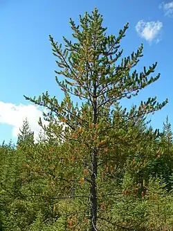 Der Anteil an sommergrünen Laubbäumen nimmt in den südlicheren Teilen des Schildes zu. Neben den Koniferen sind hier Papier-Birken, die amerikanische Populus tremuloides und die Westliche Balsam-Pappel mit vertreten. Im Südosten des Gebietes kommen auch Arten vor, die in gemäßigten Klimaten verbreitet sind, wie Gelb-Birke, Zucker-Ahorn, Schwarz-Esche und der Abendländische Lebensbaum.
