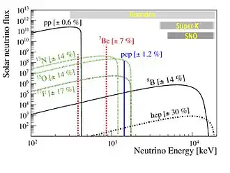 - ↑ Borexino collaboration: Neutrinos from the primary proton–proton fusion process in the Sun. In: nature. 512. Jahrgang, Nr. 7515, 2014, doi:10.1038/nature13702 (englisch).