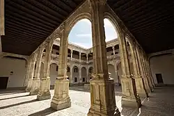 - Die Westfassade der in den Jahren nach 1540 erbauten ehemaligen Kollegiatkirche Santa Ana ist unvollendet geblieben. Das Portal stammt aus dem 18. Jahrhundert; zur gleichen Zeit wurde das Innere der Kirche in barocker bzw. klassizistischer Manier umgestaltet. Der Hauptaltar entstand nach Entwürfen des Architekten Ventura Rodríguez. Vor dem Portal stehen acht monolithische Säulen mit Kapitellen, die – ebenso wie die drei Kaiserbüsten – im Auftrag des sechsten Grafen von Miranda aus Neapel herbeigeschafft wurden.