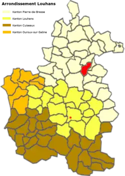 Lage der Gemeinde im Arrondissement Louhans