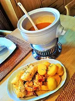 - ↑ a b Hans-Joachim Rose: Bouillabaisse. In: Die Küchenbibel: Die Enzyklopädie der Kulinaristik. Tre Torri Verlag, Wiesbaden 2015, ISBN 978-3-944628-82-0, S. 132.