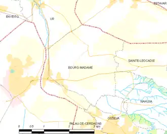 Bourg-Madame liegt auf 1150 Metern im breiten Hochtal der Cerdagne, dort wo die Nationalstraße N20 auf den Fluss Segre trifft, und direkt an der Grenze zu Spanien.