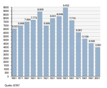 - ↑ Bilancio demografico e popolazione residente per sesso al 31 dicembre 2024. ISTAT. (Bevölkerungsstatistiken des Istituto Nazionale di Statistica, Stand 31. Dezember 2024).