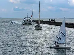 Die Fähre von La Rochelle und einlaufende Sportboote an der Mündung des Chenal de la Perrotine