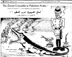 Der 1921 eingesetzte Großmufti von Jerusalem Mohammed Amin al-Husseini, der ein „judenfreies“ Palästina als Teil eines Großarabiens anstrebte, war in seiner Führungsstellung eine treibende Kraft hinter den arabischen Boykotten, zu denen er auch selbst aufrief. Er gründete 1936 ein Arabisches Hohes Komitee, forderte 1937 einen Boykott der Levante-Messe und setzte sich an die Spitze des arabischen Aufstands, welcher durch die britische Mandatsmacht niedergeschlagen wurde. Al-Husseini floh danach außer Landes und weilte ab 1941 im Deutschen Reich, von wo er 1945 nach Ägypten zurückkehrte und nationalsozialistische Propaganda in den arabischen Raum weiterverbreitete.[3]
