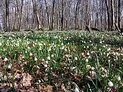 - Waldmeister-Buchenwälder und Orchideen-Kalk-Buchenwälder mit stabilen größeren Vorkommen von Leberblümchen und Märzenbecher;[6] die Buchenwaldvaritäten nehmen zusammen knapp zwei Drittel der FFH-Fläche ein und prägen das Schutzgebiet. Dort sind eine Vielzahl von Vogelarten und der Orchideenreichtum prägend.[5]