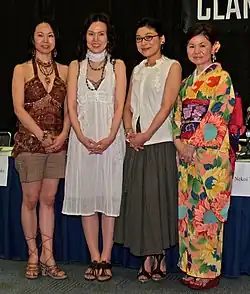 Weibliche Fans werden oft als fujoshi (腐女子, wörtlich: „verdorbenes Mädchen“) bezeichnet, eine abfällige Beleidigung, die später als selbstbeschreibender Begriff wieder aufgegriffen wurde.[143] Die genaue Herkunft des Wortes ist nicht bekannt. Die Fans nennen sich wegen ihrer Vorliebe für männlich-homosexuelle Geschichten selbstironisch als „verdorben“, wobei das japanische Wort auch für eine „edle Reifung“ stehen kann.[2] Die männliche Entsprechung ist fudanshi (腐男子, wörtlich: „verdorbener Junge“) oder fukei (腐兄, „verdorbener älterer Bruder“), beides Wortspiele, die ähnlich aufgebaut sind wie fujoshi.[19][144] Beide Bezeichnungen haben, anders als die Genre-Begriffe, außerhalb Japans kaum Verbreitung gefunden. Als Zentrum der Fankultur gilt die sogenannte Otome Road in Ikebukuro, wo es viele thematische Läden und Cosplay-Cafés gibt und Cosplay auf der Straße stattfindet. Für die dort sowie als Cosplayer aktiven Fujoshi wurde die Bezeichnung bukuro-kei geprägt.[2] „Fujoshi“ fand Mitte der 2000er Jahre größere Bekanntheit und Verbreitung in der japanischen Gesellschaft auch über die Diskurse unter Fans hinaus. Seither wird die Gruppe auch selbst Thema von Mangas, Filmen und anderen Werken sowie Zielgruppe wirtschaftlicher Tätigkeit, beispielsweise mit für Fujoshi zugeschnittenen Touristikangeboten. Sie werden in Japan sogar als „neues Geschlecht Frau gesehen“, das im Hobby Energie tankt, um eine Karriere zu verfolgen.[7] Björn-Ole Kamm stellt dazu allerdings fest, dass das medial verarbeitete Bild von Fujoshi ein idealisiertes ist, das sich den Vorstellungen des Publikums angepasst hat – beispielsweise männlichen Otaku.[43] Es gibt eine große Überschneidung zu den Anime-Manga-Fans, die als Otaku bezeichnet werden. Doch nicht jede Fujoshi würde sich selbst Otaku nennen, noch ist jede weibliche Otaku eine Fujoshi.[2] Trotz der größeren gesellschaftlichen Akzeptanz und wirtschaftlichen Bedeutung sind Vorurteile über Fujoshi als Perverse oder ähnliche erhalten geblieben, wie auch Otaku mit Vorurteilen belegt sind.[43]