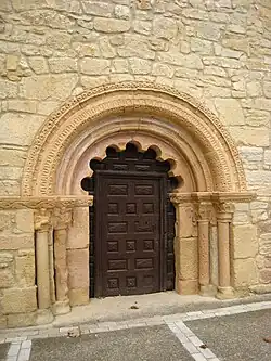 - Die aus oberflächlich geglätteten Bruchsteinen erbaute örtliche Pfarrkirche ist den hll. Julian und Basilissa geweiht. Portal und tonnengewölbtes Langhaus sind romanisch während der auf der Südseite der Fassade angebaute, fast freistehende und mit einem Durchgang versehene Glockengiebel (espadaña) später hinzugefügt wurde; der von Strebepfeilern gestützte Chorbereich mitsamt der Apsis wurden im 16. Jahrhundert erneuert und gegenüber dem Langhaus deutlich vergrößert. Das aufwändig gestaltete Südportal mit seinem Vielpassbogen ist der Blickfang der Kirche.[7][8][9]