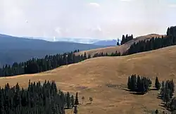 In den Wäldern im Yellowstone dominiert die Küsten-Kiefer (Pinus contorta), die nach 80 bis 100 Jahren, wenn der Wald reift, durch andere Baumarten ersetzt wird.[19] Im Yellowstone kann die Küsten-Kiefer dank einer sehr kurzen Wachstumsperiode aufgrund der Höhenlage und relativ kargen Böden fast dreihundert Jahre alt werden, bevor sie von anderen Baumarten wie Engelmann-Fichte (Picea engelmannii) oder Felsengebirgs-Tanne (Abies lasiocarpa) abgelöst wird.[19] Die Küsten-Kiefern, die im gesamten Hochland des Yellowstone-Plateaus zu finden sind, wachsen in ununterbrochenen dichten Beständen mit durchschnittlich ähnlichem Alter in verschiedenen Gruppierungen. In den 1980er-Jahren waren viele der Küsten-Kiefern-Wälder im Yellowstone-Nationalpark zwischen 200 und 250 Jahre alt und näherten sich dem Ende ihres Lebenszyklus.[18]