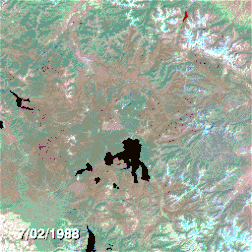 | Snake River | Yellowstone Lake, Red Mountains, Lewis Lake, West Thumb | 172.025 Acres (696 km²) | 23. Juni 1988 | 19. September 1988 |