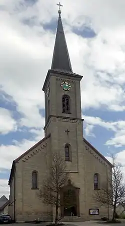 - St. Remigius oder Remigiuskirche,[15] ehemalige Pfarrkirche (bis 1694), deren Turm um das Jahr 1000 entstanden ist[16]