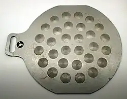Mit Hilfe der Brötchenpresse (genauer: Brötchenteigteil- und wirkmaschine) kann der Bäcker einen Teiglaib in 30 Brötchenteiglinge aufteilen und so rundwirken, dass die weitere Gestaltung der Brötchen mit der Hand erfolgen kann.