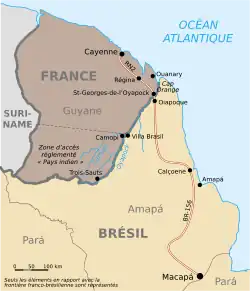 - ↑ a b c French Guiana releases land crossing between France and Brazil. In: riotimesonline.com. 19. Dezember 2021, abgerufen am 28. Mai 2025 (englisch).