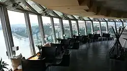 Eine besondere Attraktion ist das in 80 Meter Höhe befindliche Turmrestaurant in UFO- beziehungsweise Schiffsform auf dem 84,6 Meter hohen Pylon der Brücke. Das 1974 eröffnete Restaurant hieß früher Bystrica, wurde aber 2003 geschlossen und am 15. Juni 2005 unter der Bezeichnung Ufo neu eröffnet. Über einen Aufzug im linken Pfeiler (vom Norden aus gesehen) gelangt man ins Restaurant, welches einen guten Ausblick auf die Stadt bietet. Oberhalb des Restaurants befindet sich in 95 Meter Höhe noch ein Aussichtspunkt. Der rechte Pfeiler verfügt über eine Nottreppe mit 430 Stufen. Am 16. Juni 2013 fand dort mit dem Ufo Vertical Sprint erstmals ein Treppenlauf statt, der zu den Masters-Rennen im Treppenlauf-Weltcup zählt.[7]